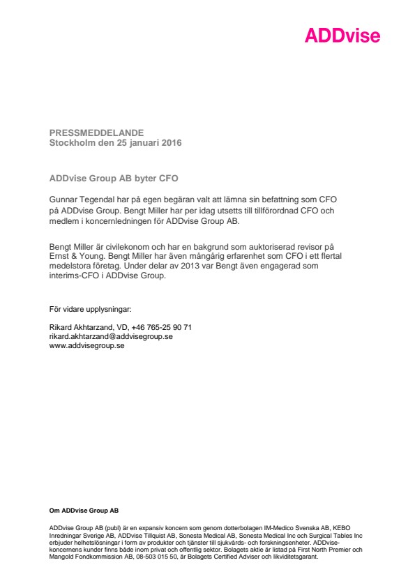 Rikard Akhtarzand, VD, +46 765-25 90 71 rikard.akhtarzand@addvisegroup.se www.addvisegroup.se