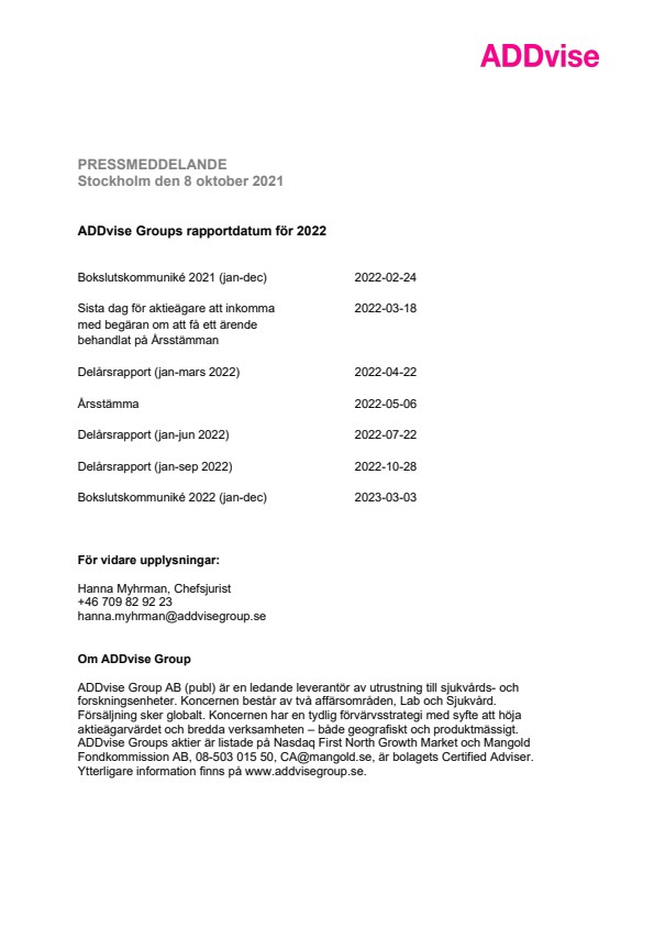 ADDvise Groups rapportdatum för 2022
