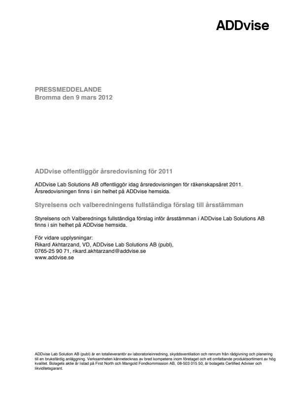 Styrelsens och Valberednings fullständiga förslag inför årsstämman i ADDvise Lab Solutions AB finns i sin helhet på ADDvise hemsida.