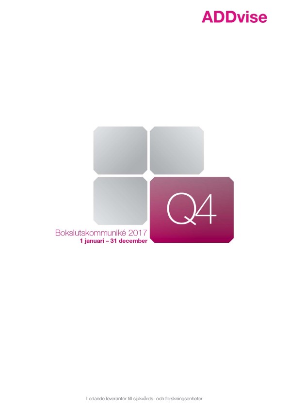 4 Siffrorna är ej reviderade proformasiffror januari – december med Hettich Labinstrument AB och AB Germa i ADDvise-koncernen från och med den 1 januari 2017.